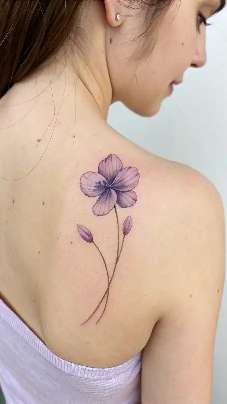 For a delicate look, opt for a minimalist approach with a small violet flower placed on the shoulder, near the collarbone or the outer edge.