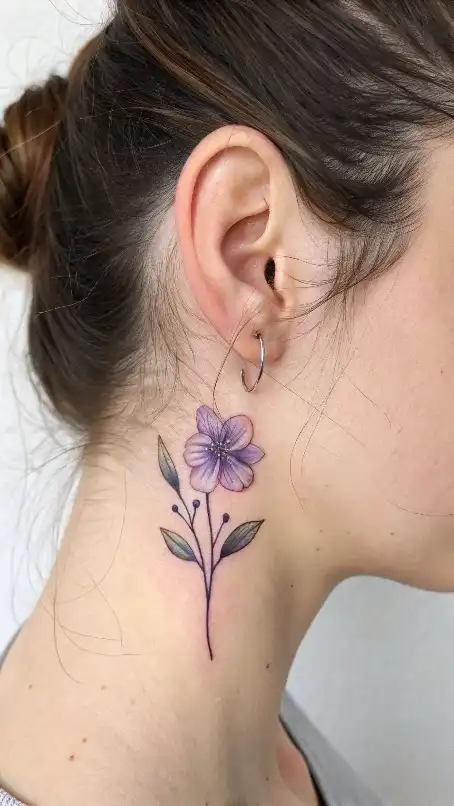 When choosing a simple violet tattoo behind your ear, consider the personal symbolism that resonates with you.