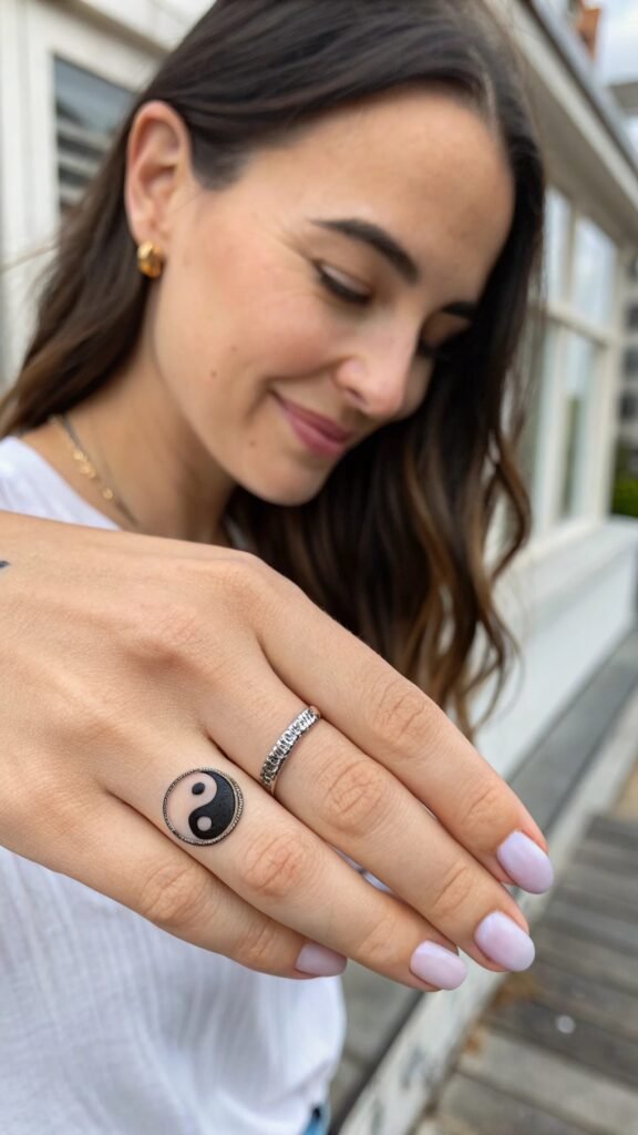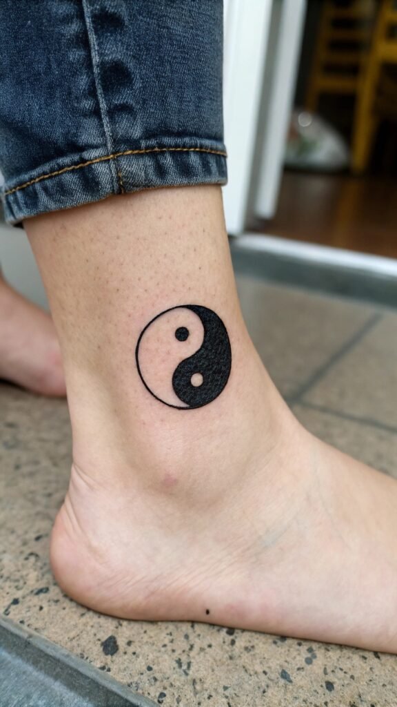 This tattoo suits women who enjoy minimalism. It’s small but bold. The black and white contrast pops on any skin tone. Imagine wearing it with a flowy dress or a tank top—it’s subtle yet striking. I’ve seen friends get this design and rave about how it feels like a daily reminder to stay centered. One gal told me, “It’s like my little zen moment every time I see it.” That’s the magic of this classic.