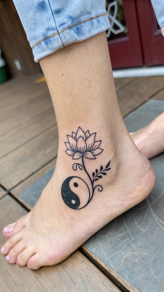 The lotus means rising above mess. It grows in mud but blooms clean. Add yin-yang, and it’s about finding peace in chaos. For women seeking calm, this hits home. The design flows—petals curve with the circle. It’s feminine and strong, like a quiet power move.